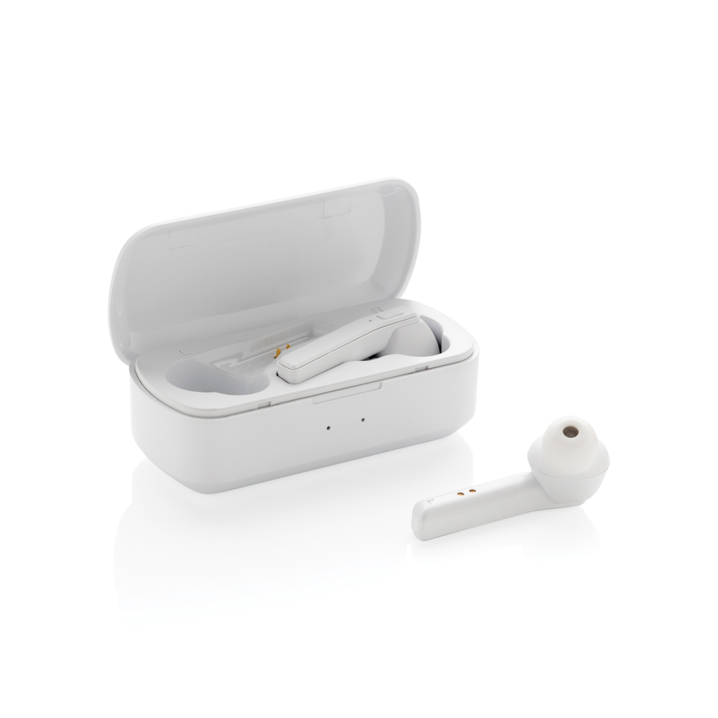 Låt musiken flöda med dessa äkta trådlösa öronsnäckor i laddningsfodral av ABS. Batteriet på 50 mAh ger en speltid på upp till 3 timmar och laddas upp på 1 timme i laddningsfodralet. Öronsnäckorna har automatisk parkopplingsfunktion. Med BT 5.0 för smidig anslutning och en räckvidd på upp till 10 meter. Med svarsfunktion och mikrofon. Silikonmembran i 3 olika storlekar medföljer.