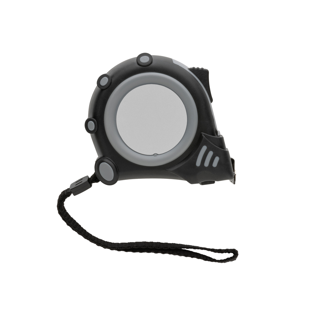 5M måttband tillverkat av RCS (Recycled Claim Standard) certifierad återvunnen ABS. Totalt återvunnet innehåll: 15% baserat på total produktvikt. RCS certifiering säkerställer en helt certifierad leveranskedja av de återvunna materialen. TRP gummi för smidigt grepp. Med utlösnings/låsknapp. 19mm ensidigt gult band med svart krok i kolstål med två integrerade magneter. Med handledsrem i polyester. Levereras i FSC® mix kraft förpackning.